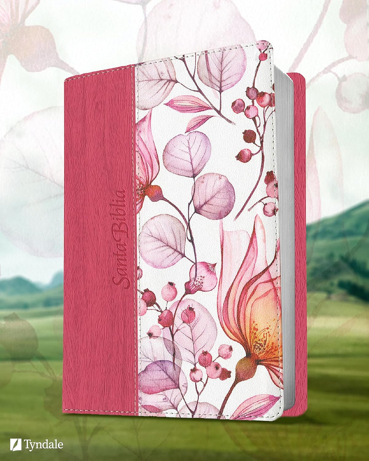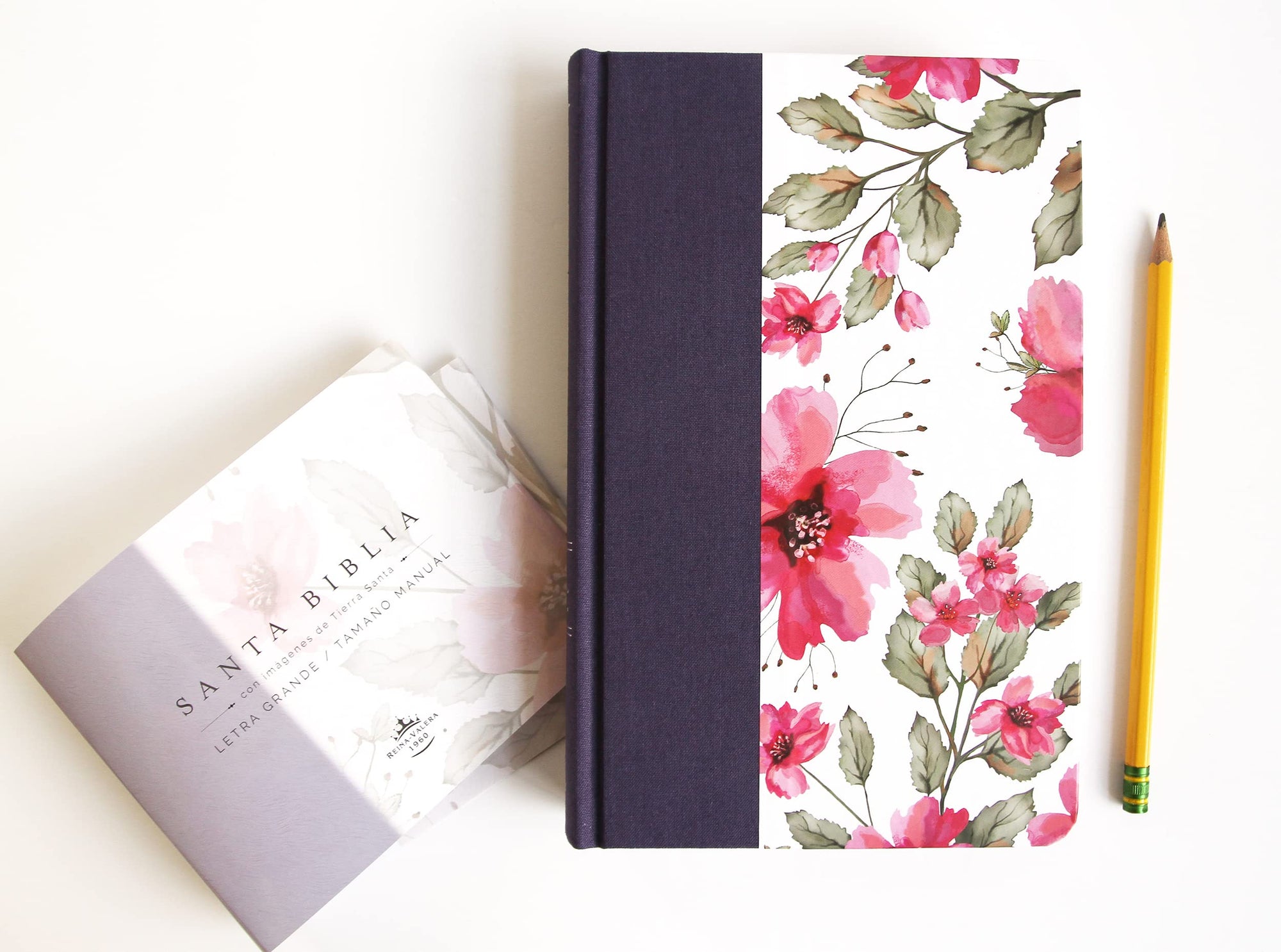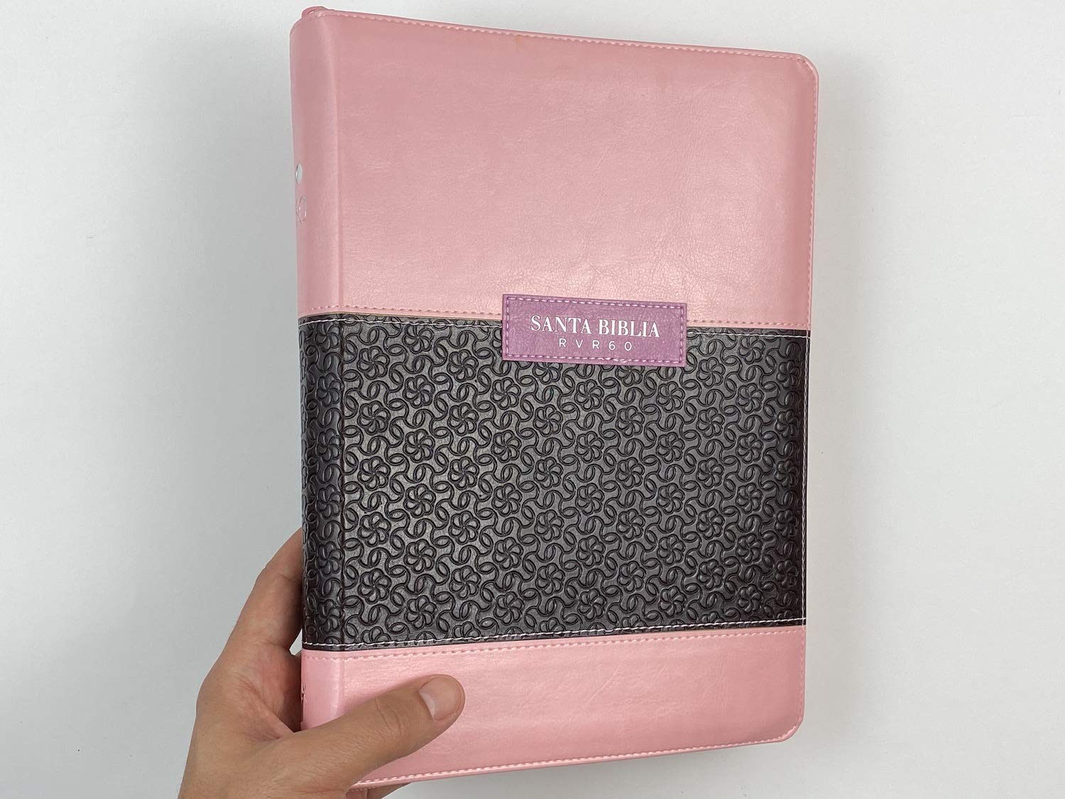 Biblia Reina Valera 1960 letra grande, Tela rosada con flores -