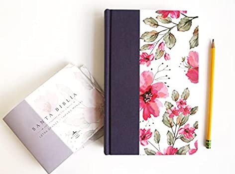 Biblia RVR 1960 letra grande Tapa dura y tela verde con flores tamaño manual -