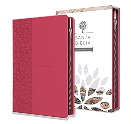 Santa Biblia RVR 1960 - Tamaño manual, letra grande, cuero de imitación, color fucsia, con cremallera -