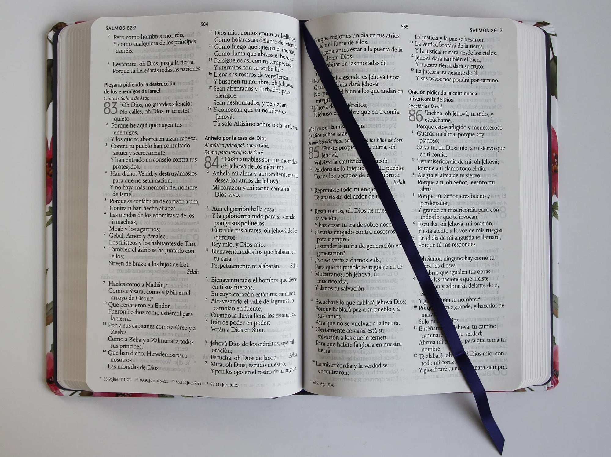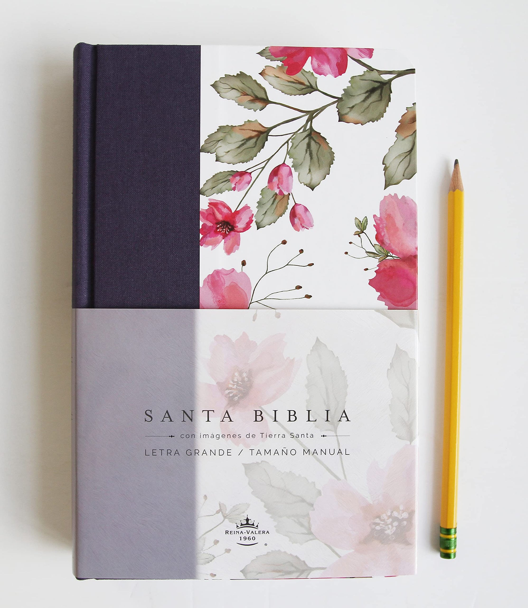 Biblia Reina Valera 1960 letra grande tela azul púrpura con flores -