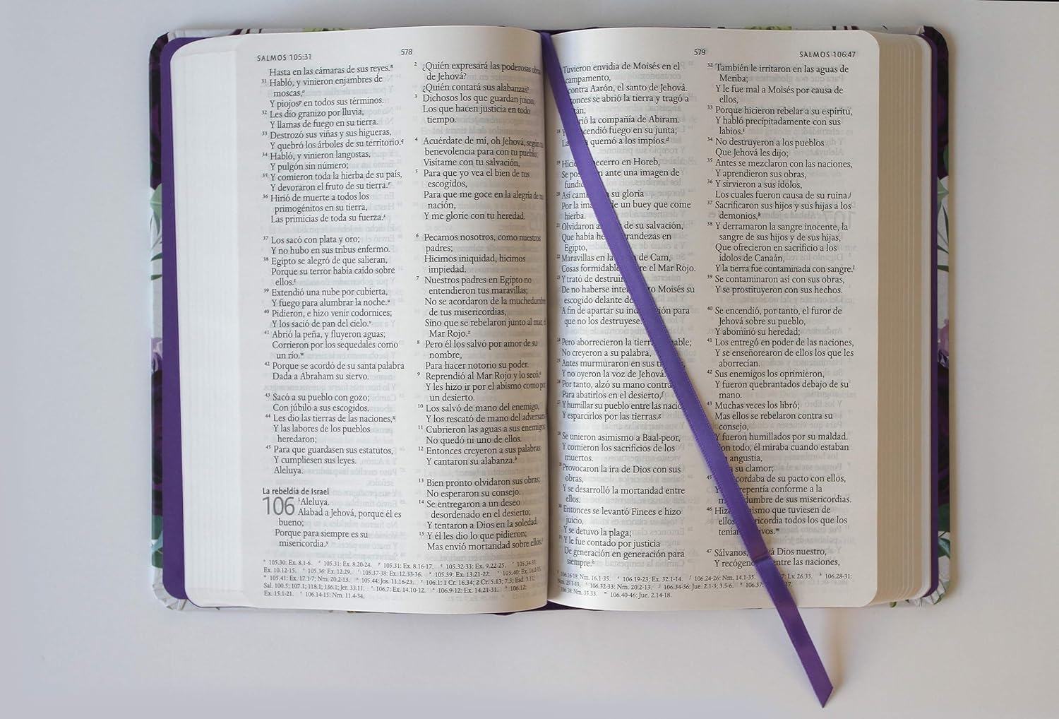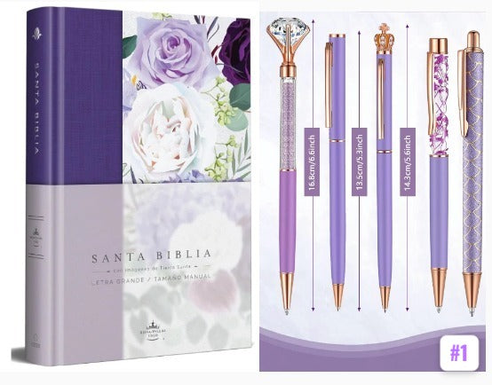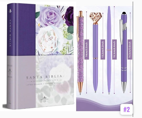 Biblia RVR1960 Tapa dura y tela morada con flores tamaño manual -