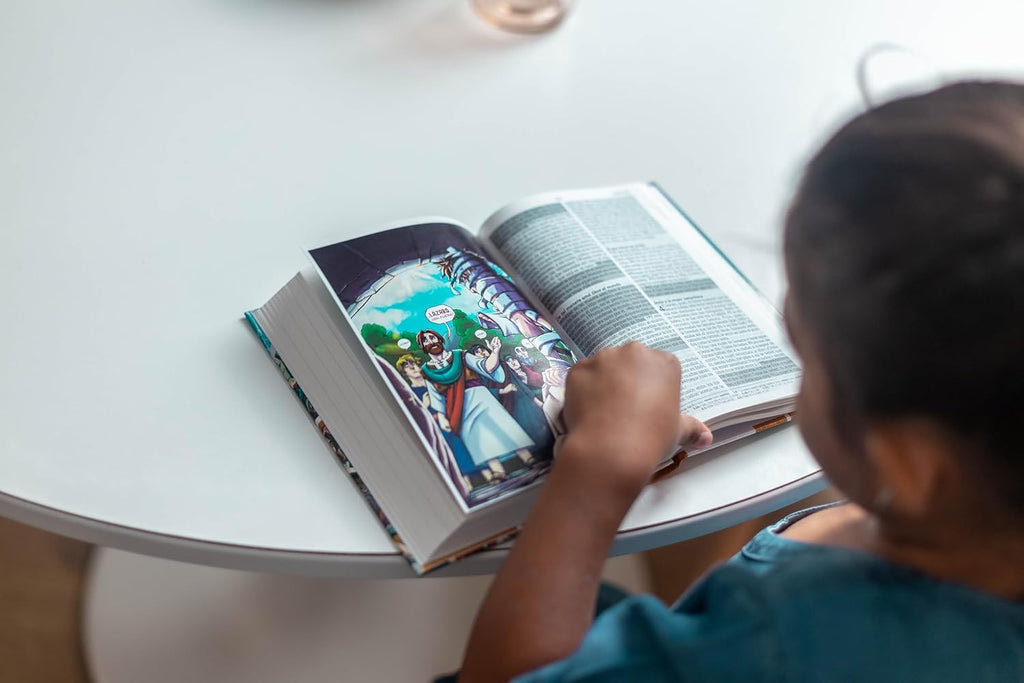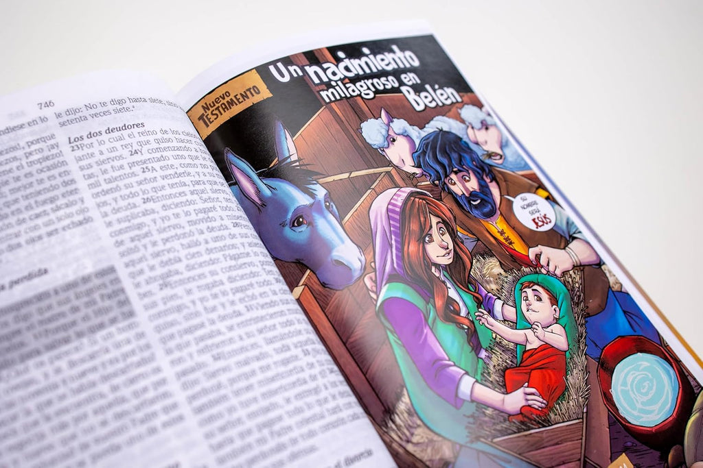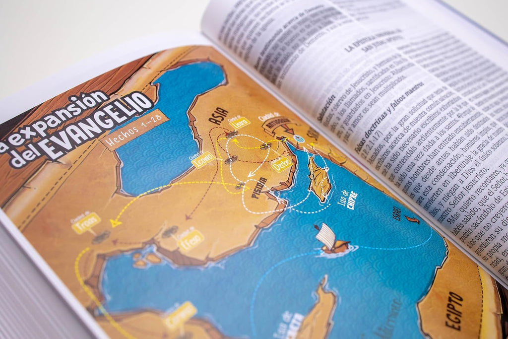 Además, contiene el plan de salvación para niños, las historias más populares para estimular la mente de los niños a querer conocer más de Dios en la más popular traducción en español, Reina Valera 1960..