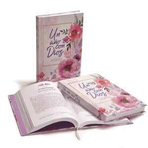 Un año con Dios, presenta un devocional para cada día del año. Cada uno de estos devocionales busca que el lector profundice su relación con Dios, aplicando el conocimiento, los valores y la sabiduría que se encuentran en la Biblia a la vida diaria. Con muchas ilustraciones, gran colorido con toque femenino y contenido inspiracional en cada uno de los 365 devocionales diarios y cada versículo.